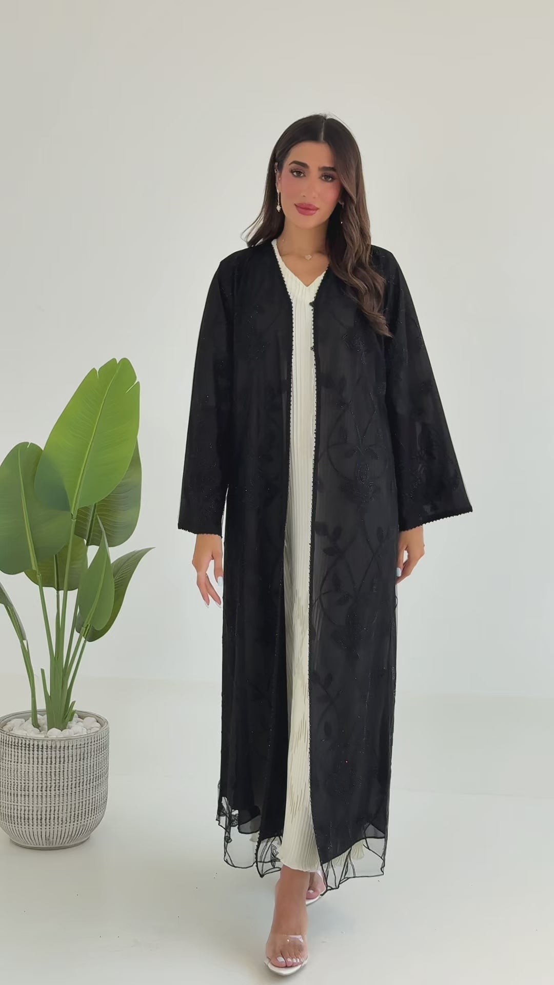 Introducing our stunning new eid collection black abaya, exquisitely designed with a touch of elegance. The abaya features a sleek, black finish with beautyful ari embroidary dantil with stone works.. Sheila included.